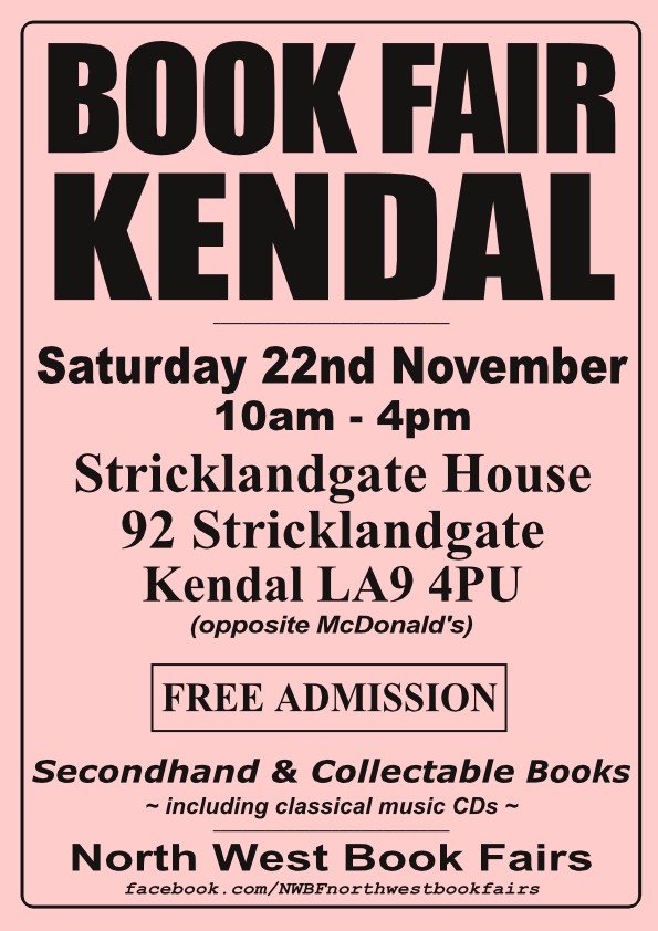 On Saturday, 22nd November we’ll be exhibiting at the Kendal Book Fair being held at Stricklandgate House, 92 Stricklandgate Kendal LA9 4PU.